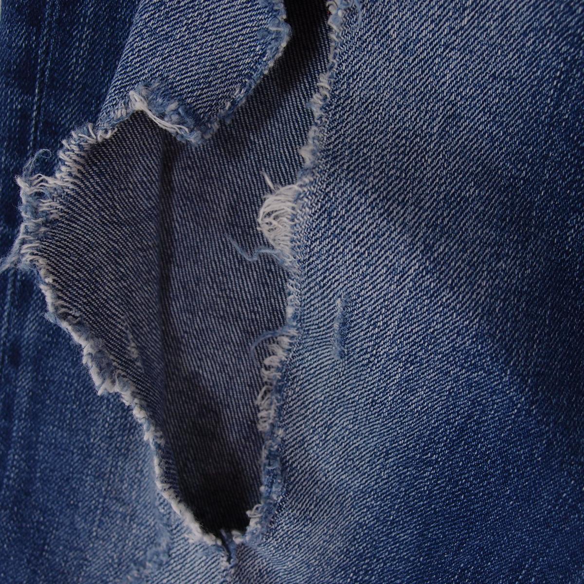 - Please note the big rip on the knee